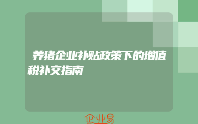 - 养猪企业补贴政策下的增值税补交指南