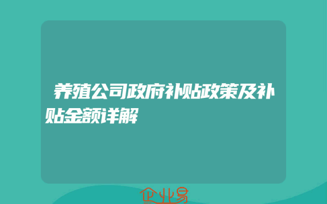 - 养殖公司政府补贴政策及补贴金额详解