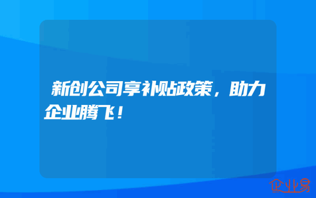 - 新创公司享补贴政策,助力企业腾飞!