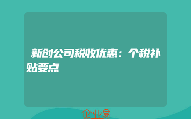 - 新创公司税收优惠:个税补贴要点