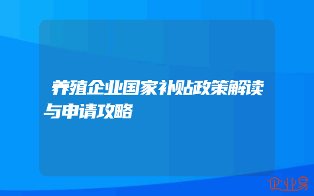 - 养殖企业国家补贴政策解读与申请攻略