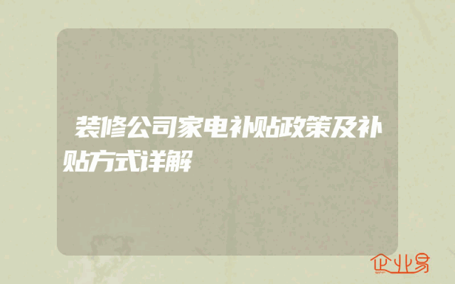 - 装修公司家电补贴政策及补贴方式详解