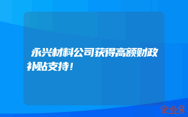 - 永兴材料公司获得高额财政补贴支持!
