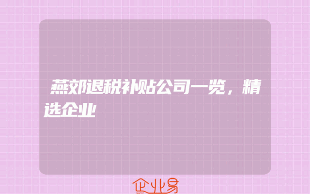 - 燕郊退税补贴公司一览,精选企业