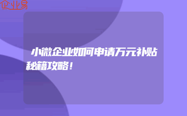 - 小微企业如何申请万元补贴秘籍攻略!