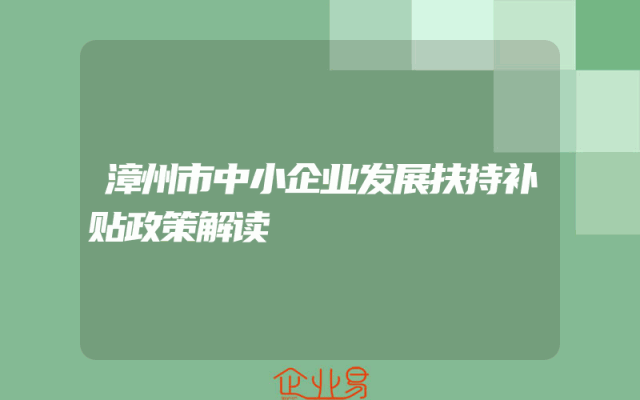 - 漳州市中小企业发展扶持补贴政策解读