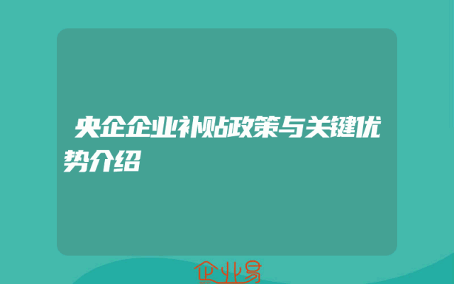 - 央企企业补贴政策与关键优势介绍