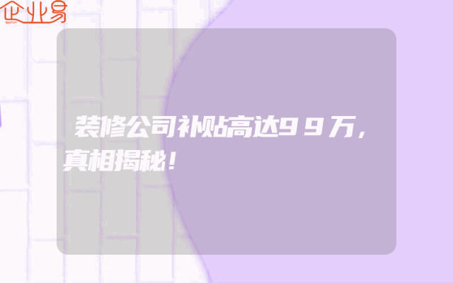 - 装修公司补贴高达99万,真相揭秘!