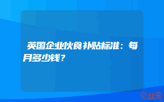 - 英国企业伙食补贴标准:每月多少钱?一、英国企业伙食补贴概述在英国,企业为员工提供的伙食补贴是为了提高员工的生活质量和工作效率而实行的一种福利政策。补贴的金额和标准因企业规模、行业特点以及地区差异等因素而有所不同。接下来,我们将从不同角度详细