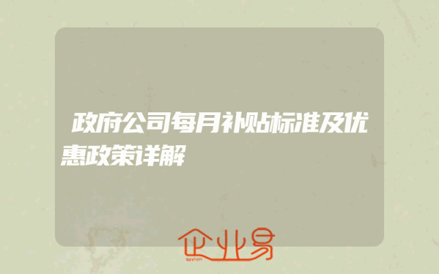 - 政府公司每月补贴标准及优惠政策详解一、政府补贴概述近年来,为了支持企业发展,鼓励创新创业,政府推出了一系列补贴政策和优惠措施。针对不同类型的公司以及企业不同阶段的需求,政府补贴项目和标准也有所不同。以下是对政府公司每月补贴标准及优惠政策的详