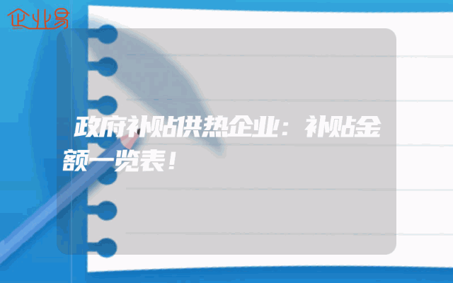 - 政府补贴供热企业:补贴金额一览表一、补贴政策的背景与意义在我国,冬季供热关乎民生,对于保障人民群众温暖过冬具有重要意义。为了支持供热企业的发展,减轻其运营压力,政府出台了一系列补贴政策。这些补贴政策不仅有助于供热企业稳定运营,还能促进相关产