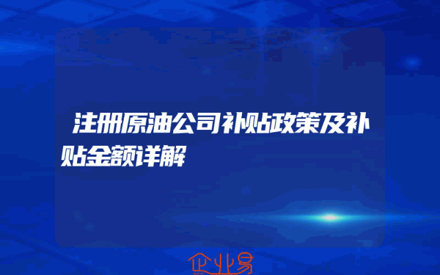 - 注册原油公司补贴政策及补贴金额详解原油公司注册补贴政策概述随着全球能源市场的不断发展,原油行业逐渐成为国内外重要的经济支柱之一。为了鼓励更多的企业投身于原油行业,各国政府都出台了一系列的补贴政策。本文将详细解读注册原油公司的补贴政策及其补贴