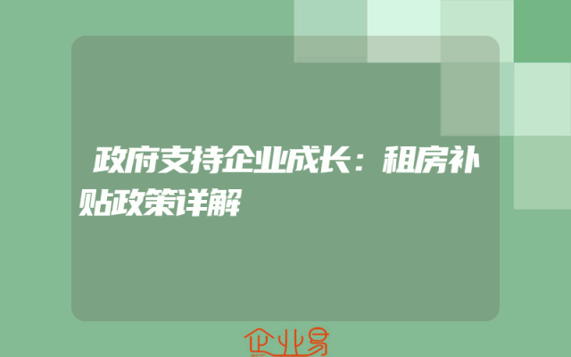 - 政府支持企业成长:租房补贴政策详解