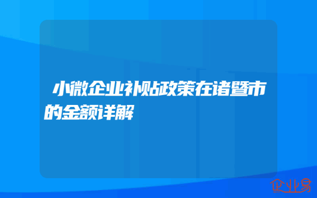 - 小微企业补贴政策在诸暨市的金额详解