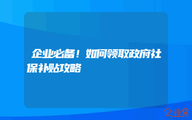 - 企业必备!如何领取政府社保补贴攻略