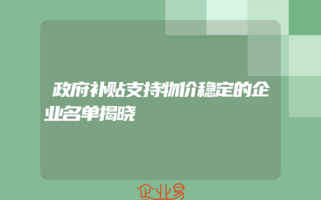 - 政府补贴支持物价稳定的企业名单揭晓