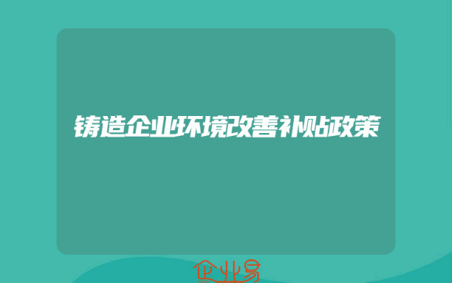 - 铸造企业环境改善补贴政策详解一、补贴政策的背景与意义随着工业化的快速发展,环境保护问题日益受到社会各界的关注。铸造企业作为重要的制造业领域之一,其生产过程中产生的环境污染亦不容忽视。为了推动铸造企业加强环境保护,改善工作环境,政府出台了一系