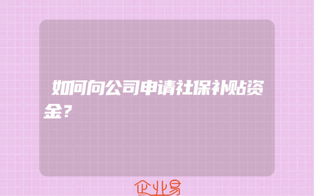 - 如何向公司申请社保补贴资金?了解社保补贴政策首先,你需要了解相关的社保补贴政策。政府为了鼓励企业为职工缴纳社保,会推出一些补贴政策。这些政策通常针对小微企业、创业公司以及特定行业的企业,补贴的金额和方式因政策而异。可以通过政府官方网站、人社