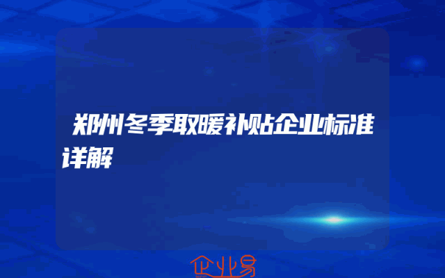 - 郑州冬季取暖补贴企业标准详解