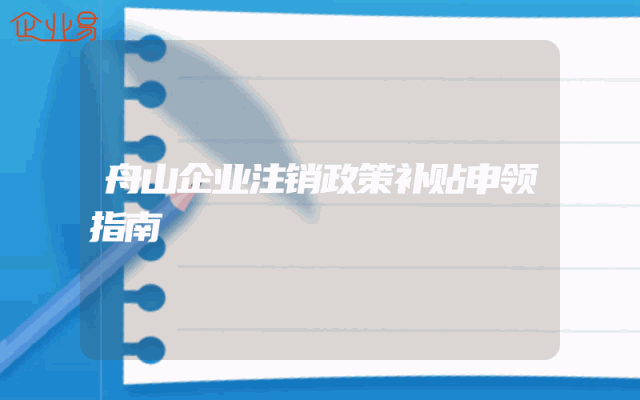 - 舟山企业注销政策补贴申领指南