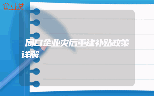 - 周口企业灾后重建补贴政策详解