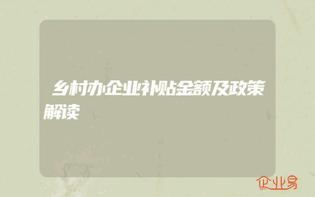 - 乡村办企业补贴金额及政策解读