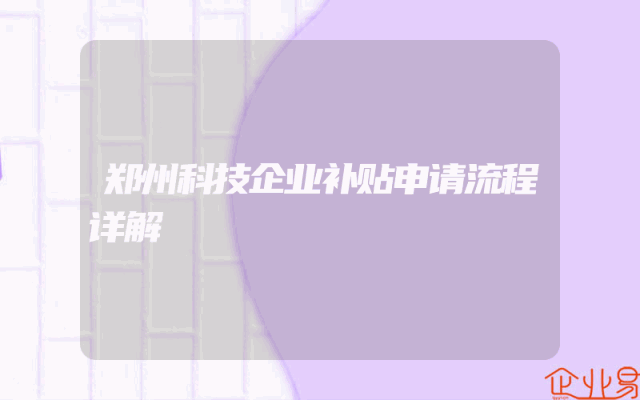 - 郑州科技企业补贴申请流程详解