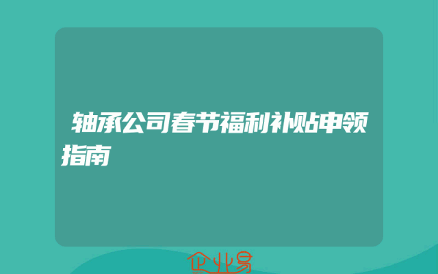 - 轴承公司春节福利补贴申领指南