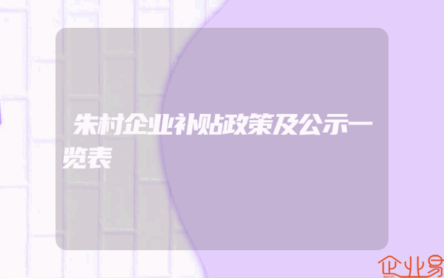 - 朱村企业补贴政策及公示一览表