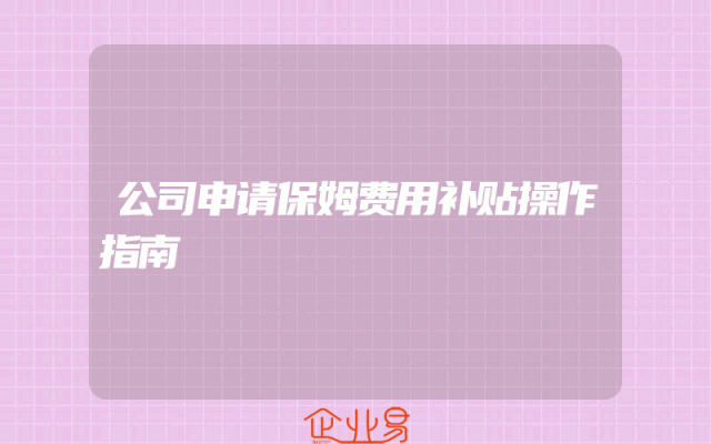 - 公司申请保姆费用补贴操作指南