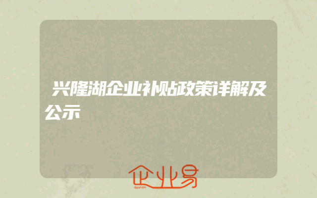 - 兴隆湖企业补贴政策详解及公示