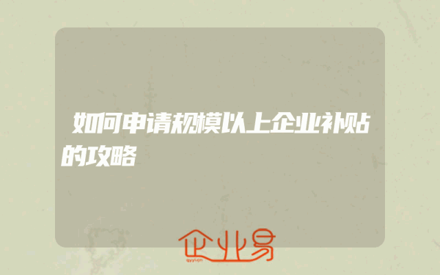 - 如何申请规模以上企业补贴的攻略了解补贴政策作为规模以上的企业,首先需要深入了解国家和地方政府的补贴政策。这些政策通常是为了鼓励企业扩大生产规模,提高技术创新能力,促进经济发展而制定的。可以通过政府官方网站、相关部门的公告以及行业内的权威媒体