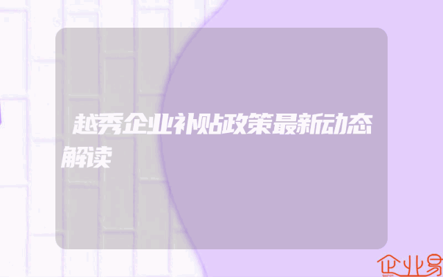 - 越秀企业补贴政策最新动态解读