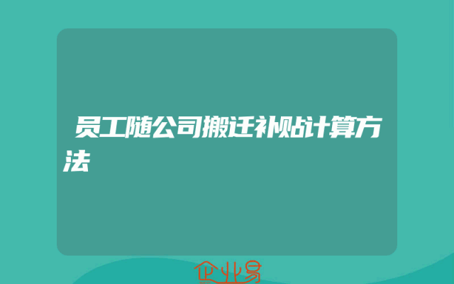 - 员工随公司搬迁补贴计算方法解析一、公司搬迁补贴概述随着企业的发展和扩张,公司搬迁成为常态。为了鼓励员工随公司一同搬迁,许多企业会提供一定的搬迁补贴。这不仅是对员工的一种福利,也是企业稳定员工队伍、促进搬迁工作顺利进行的重要手段。二、补贴计算