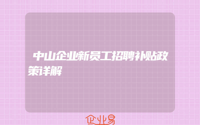 - 中山企业新员工招聘补贴政策详解一、政策背景及概述中山市为鼓励企业积极招聘新员工,促进本地就业市场繁荣,推出了一系列招聘补贴政策。这些政策旨在减轻企业招聘成本,提高人力资源市场的活跃度和企业竞争力。接下来,我们将详细解读这些政策。二、补贴政策
