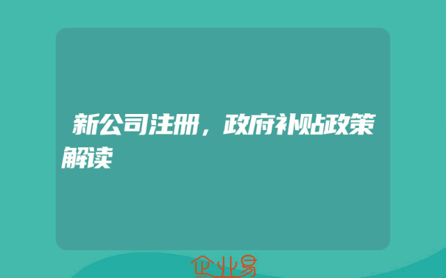 - 新公司注册,政府补贴政策解读