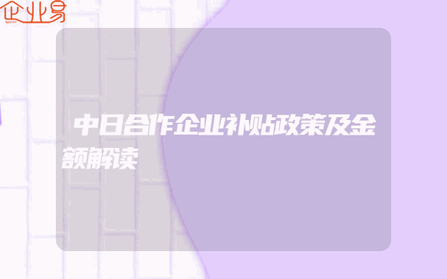 - 中日合作企业补贴政策及金额解读