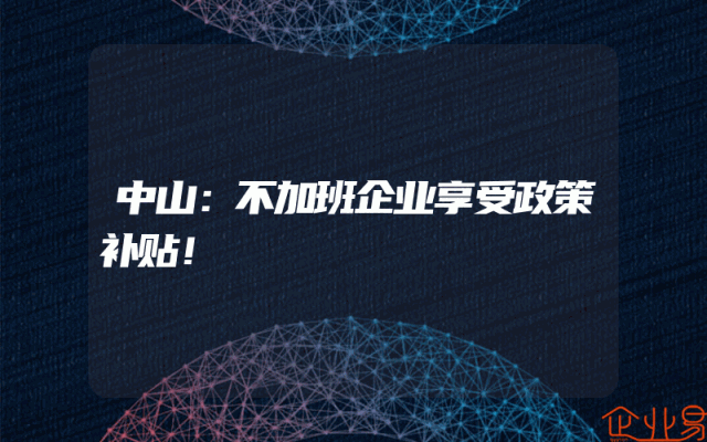 - 中山:不加班企业享受政策补贴!
