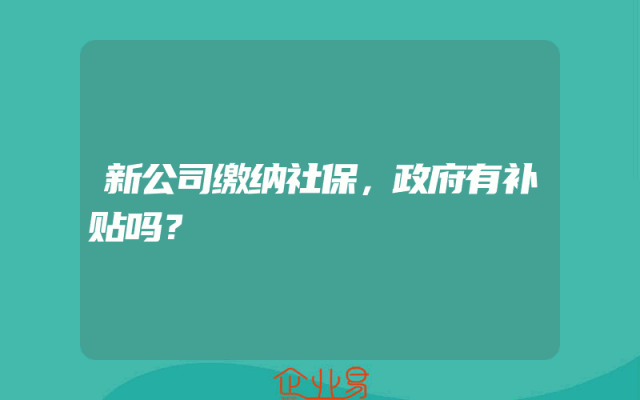 - 新公司缴纳社保,政府有补贴吗?