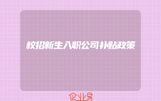 - 校招新生入职公司补贴政策解析一、补贴政策概述随着企业对人才竞争的日益加剧,为了吸引和留住优秀的新员工,许多公司推出了针对校园招聘新生的入职补贴政策。这些政策从多个角度为员工提供了实质性的支持,帮助新员工更好地适应公司环境,平衡工作与