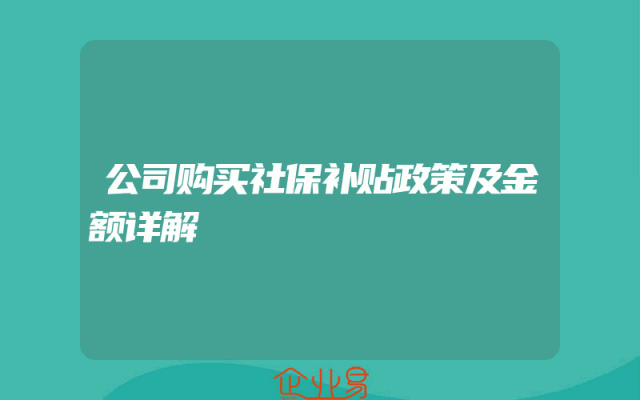 - 公司购买社保补贴政策及金额详解