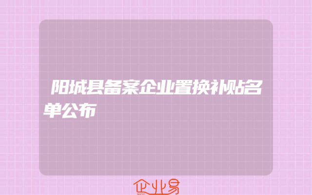 - 阳城县备案企业置换补贴名单公布