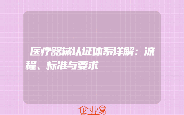 - 医疗器械认证体系详解:流程、标准与要求