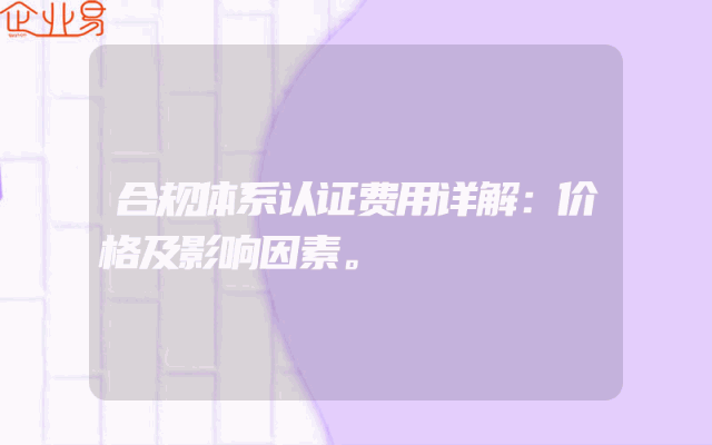 - 合规体系认证费用详解:价格及影响因素一、合规体系认证费用的概述随着企业规模的扩大和市场竞争的加剧,企业对合规体系的建设越来越重视。合规体系认证作为企业运营中的重要环节,涉及到一系列的费用。本文将详细解析合规体系认证的费用,以及影响这些费用的