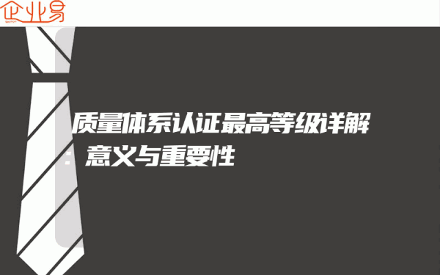 - 质量体系认证最高等级详解:意义与重要性什么是质量体系认证最高等级在现代企业管理体系中,质量体系认证是评价企业质量管理和产品标准的一种重要手段。质量体系认证的最高等级,通常代表着企业在质量管理上的卓越表现,是对企业质量保障能力的最高认