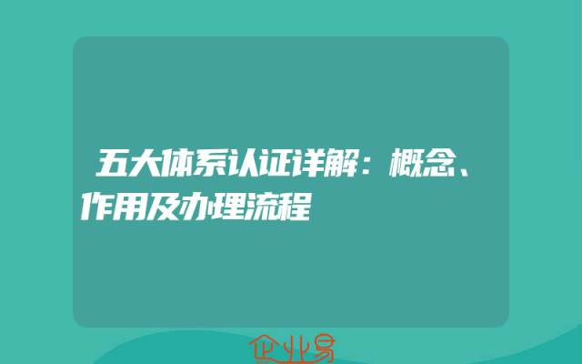 - 五大体系认证详解:概念、作用及办理流程一、五大体系认证的概念在当今竞争激烈的市场环境中,企业为了提升自身的管理水平和产品质量,常常会寻求各种体系认证。五大体系认证是指质量管理体系认证、环境管理体系认证、职业健康安全管理体系认证、食品安全管理