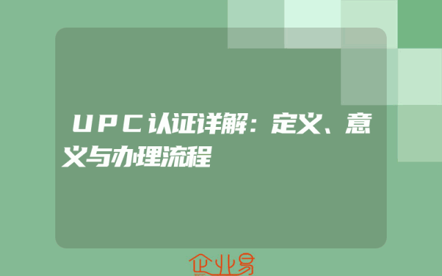 - UPC认证详解:定义、意义与办理流程
