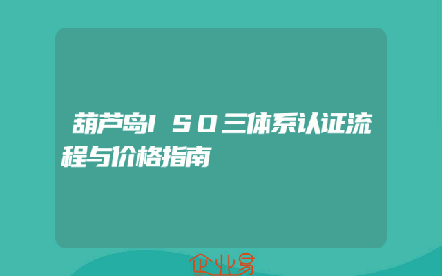 - 葫芦岛ISO三体系认证流程与价格指南