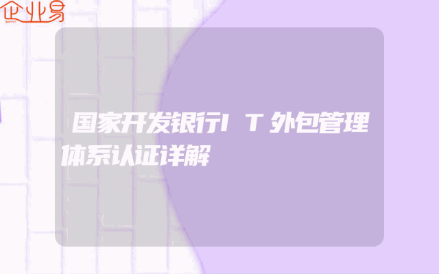 - 国家开发银行IT外包管理体系认证详解一、认证背景与重要性随着信息技术的快速发展,银行业对于IT系统的依赖程度日益加深。国家开发银行作为重要的金融机构,其IT系统的稳健与安全至关重要。为确保IT系统的可靠运行,国家开发银行推行IT外包管理体系