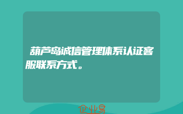 - 葫芦岛诚信管理体系认证客服联系方式。